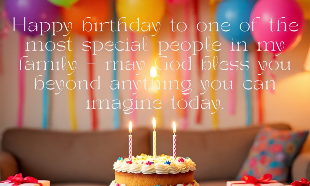- Wishing my beloved family member a birthday filled with love, laughter, good food, and God’s richest blessings today.